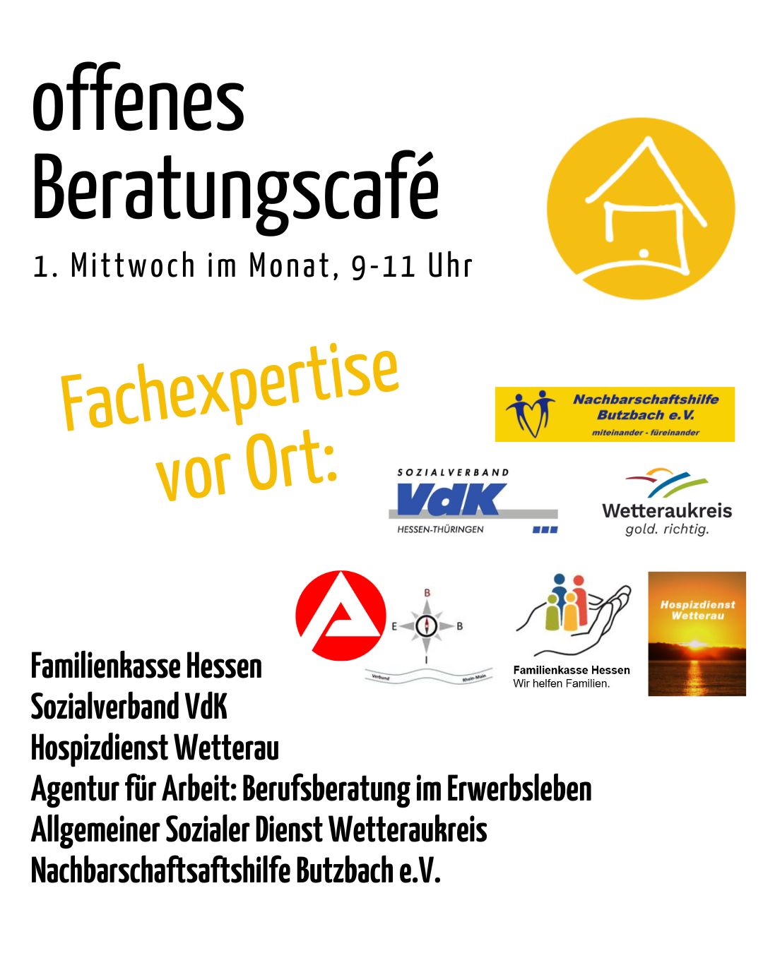 9-11h offenes Beratungscafé mit Familienkasse Hessen, Hospizdienst Wetterau, Sozialverband VdK, Agentur für Arbeit Gießen: Berufsberatung im Erwerbsleben, Allgemeiner Sozialer Dienst Wetteraukreis, Nachbarschaftshilfe